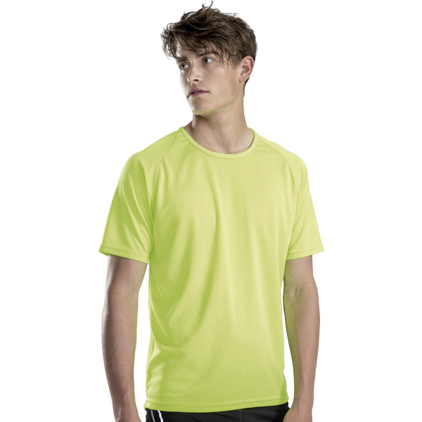 Pánské sportovní tričko s krátkým raglánovým rukávem, s prodlouženým zadním dílemm s kulatým průkrčníkem a s bočními švy. Funkční materiál zajišťuje odvádění potu a udržování tělesné teploty. Tričko se hodí na individuální sportovní trénink nebo na sportovní akci. Doporučujeme nosit tričko přímo na tělo, proto objednej raději o velikost menší.