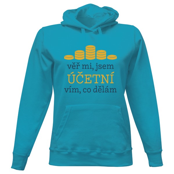 Dámská mikina s kapucí s potiskem Jsem účetní a vím, co dělám