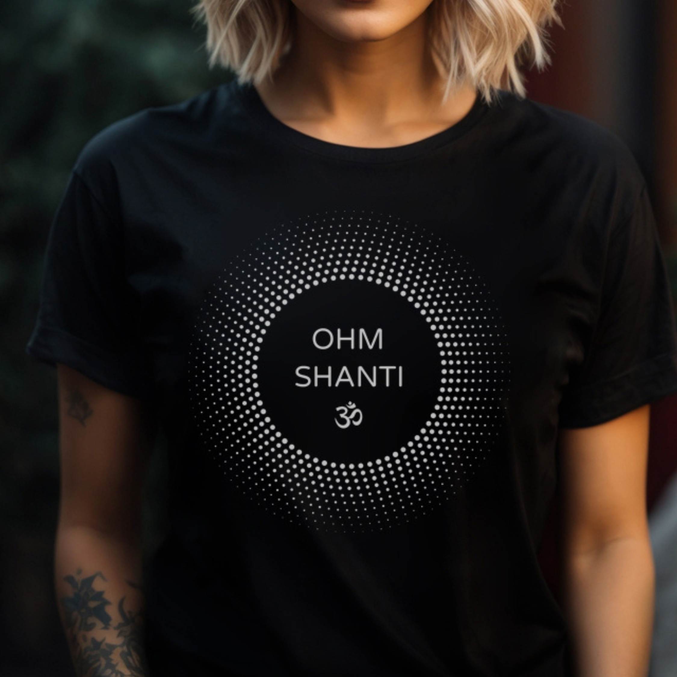 Minimalistický design motivu OHM SHANTI ideální na jógovou mikinu nebo tričko.