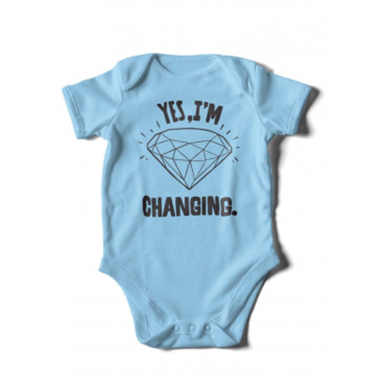 Jemný motiv na dětském bodýčku YES, I´M CHANGING, charakterizující čas velkých změn a také naději na lepší zítřky.