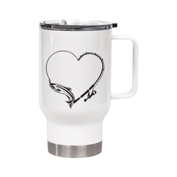 Cestovní termohrnek s uchem s potiskem Láska k rybolovu