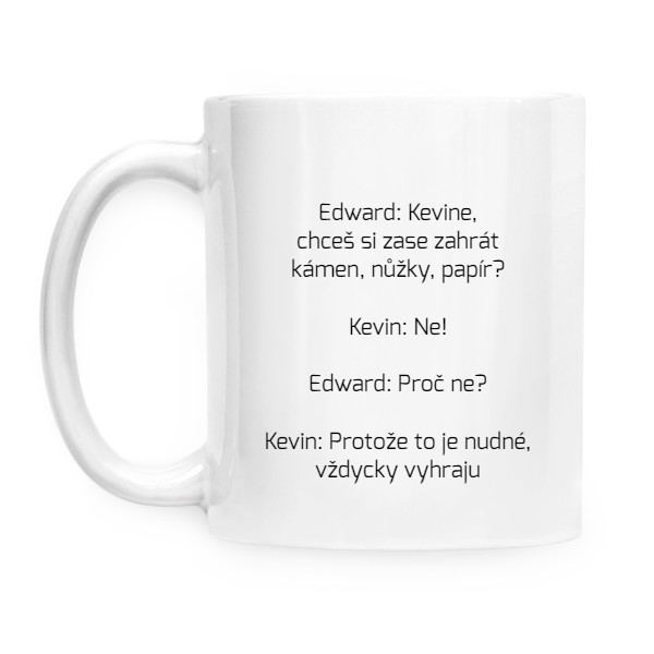 Hrnek malý bílý s potiskem Střihoruký Edward - hrneček s hláškou z filmu
