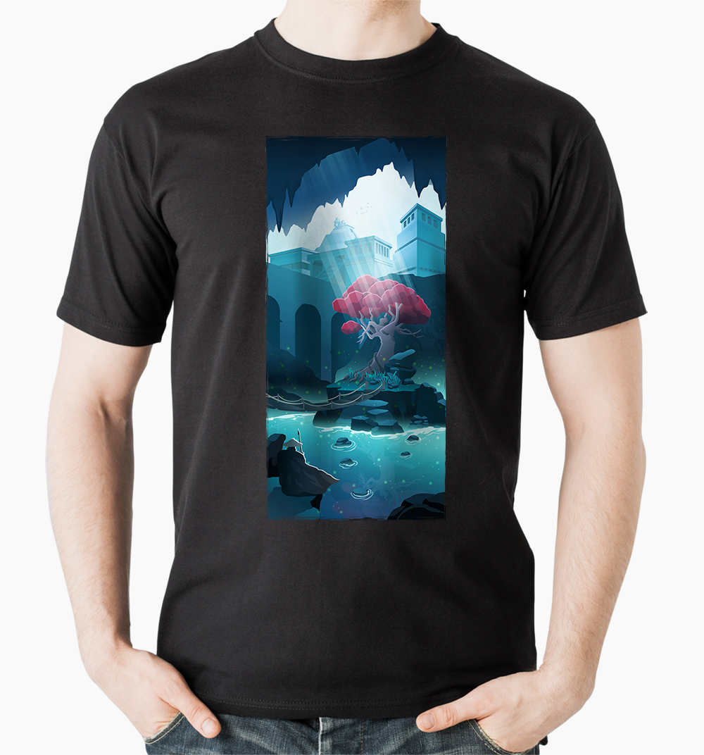 Kreativní fantasy tričko s ilustrací jeskynního komplexu