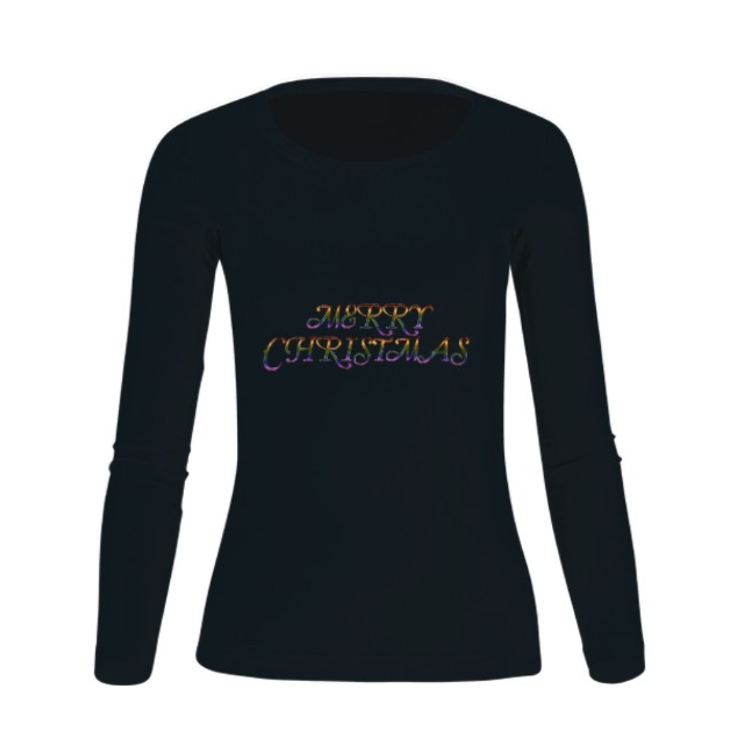 Tričko s potiskem Dámské tričko černé dlouhé Merry Christmas
