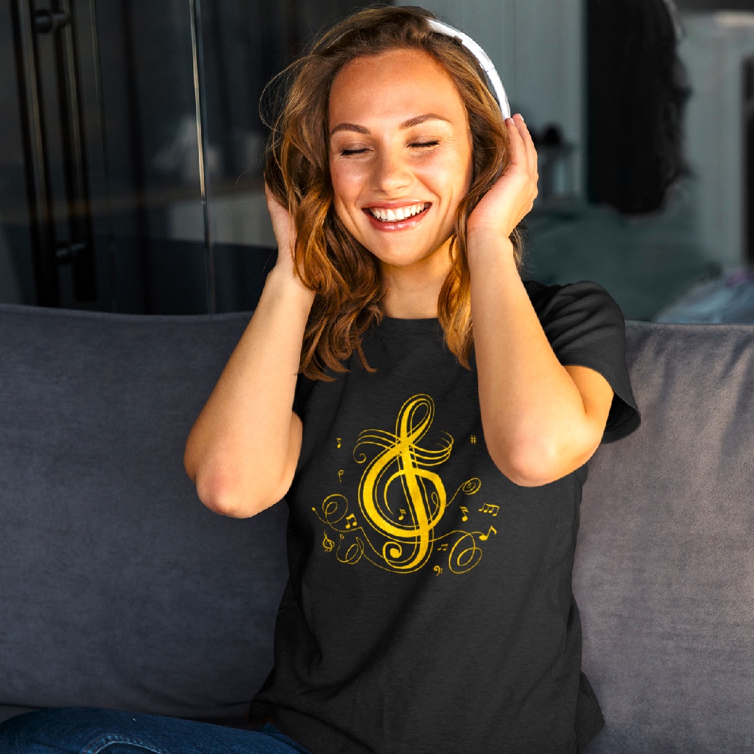 Tričko s potiskem Houslový klíč zlatý