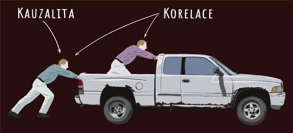 Také si vaše okolí myslí, že nastávají-li dva jevy ve stejný okamžik, jeden je příčinou druhého? Mlácení pánví po hlavě vám začíná připadat jako docela dobré řešení, nejste si ale jisti, zdali je lepší umlátit okolí, nebo sebe? Zkuste to vyjádřit obrázkem!