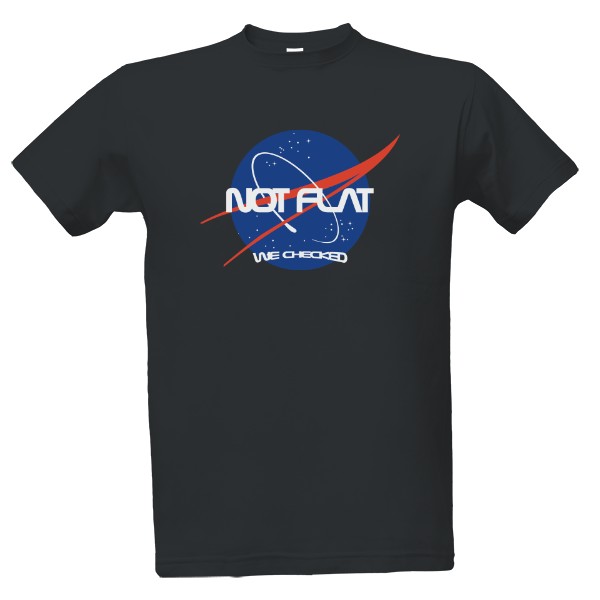 Not Flat je design inspirovaný ikonickým logem NASA, ale s vtipnou úpravou, která odkazuje na teorii kulaté Země. Tento motiv je určen pro fanoušky vědy, vesmíru a všech, kteří si rádi utahují z konspiračních teorií. Kombinuje minimalistický, ale výrazný vzhled s chytrým humorem, který okamžitě upoutá pozornost. Ideální pro ty, kteří věří faktům a mají smysl pro nadsázku.