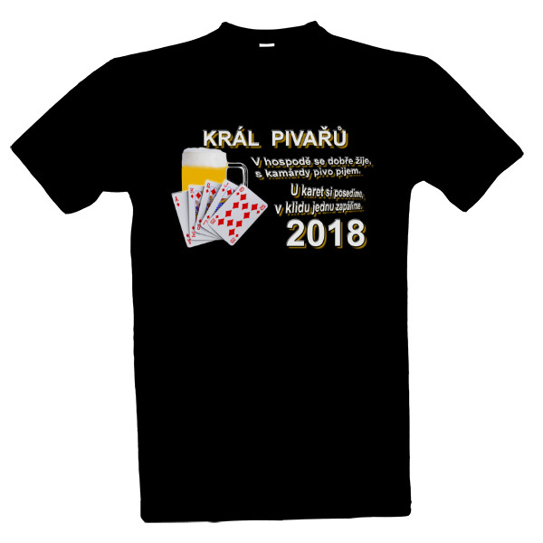 Tričko pro milovníky piva a karet s nápisem ,,Král pivařů 2018".