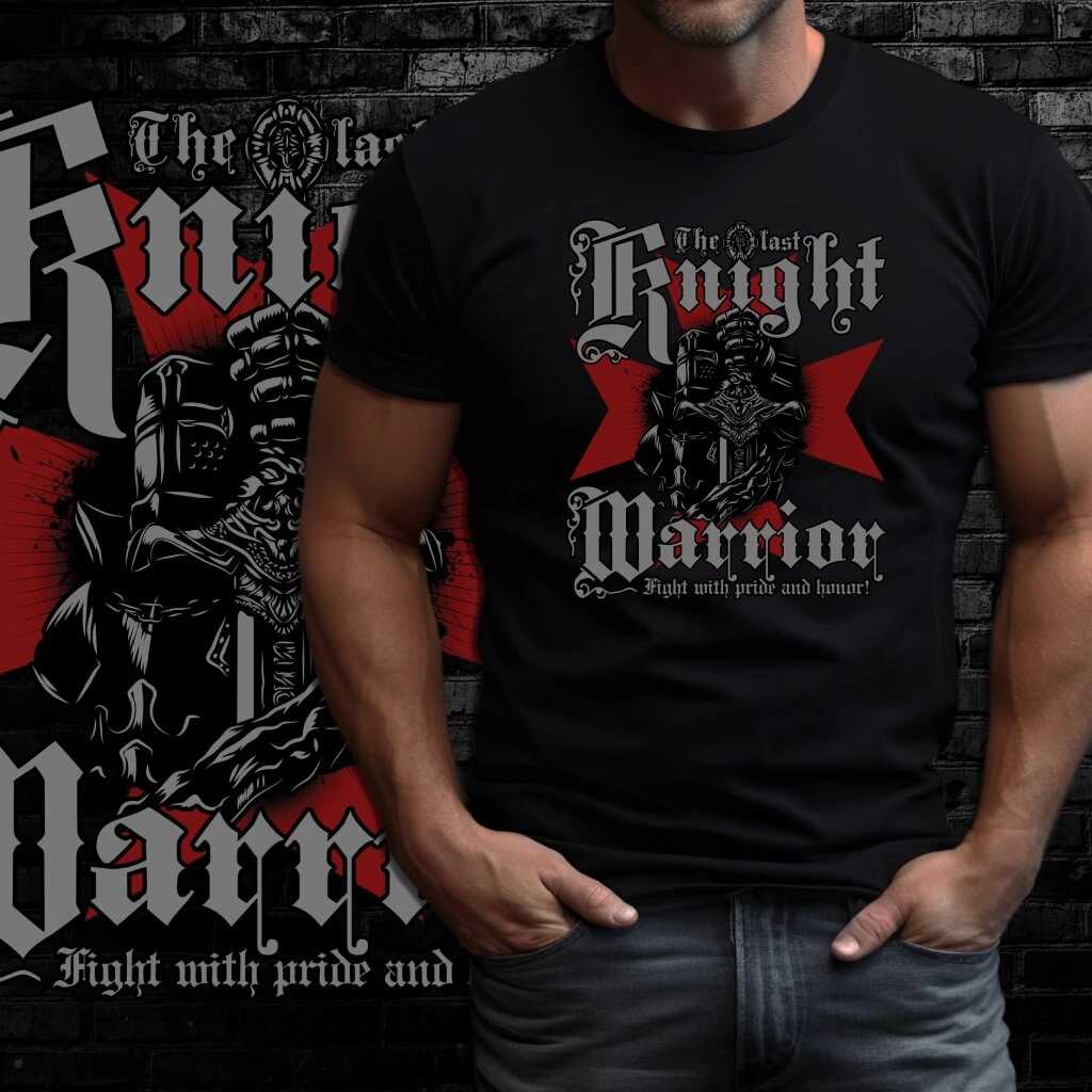Rytíř a kříž - Motiv s nápisem The Last Knight Warrior.