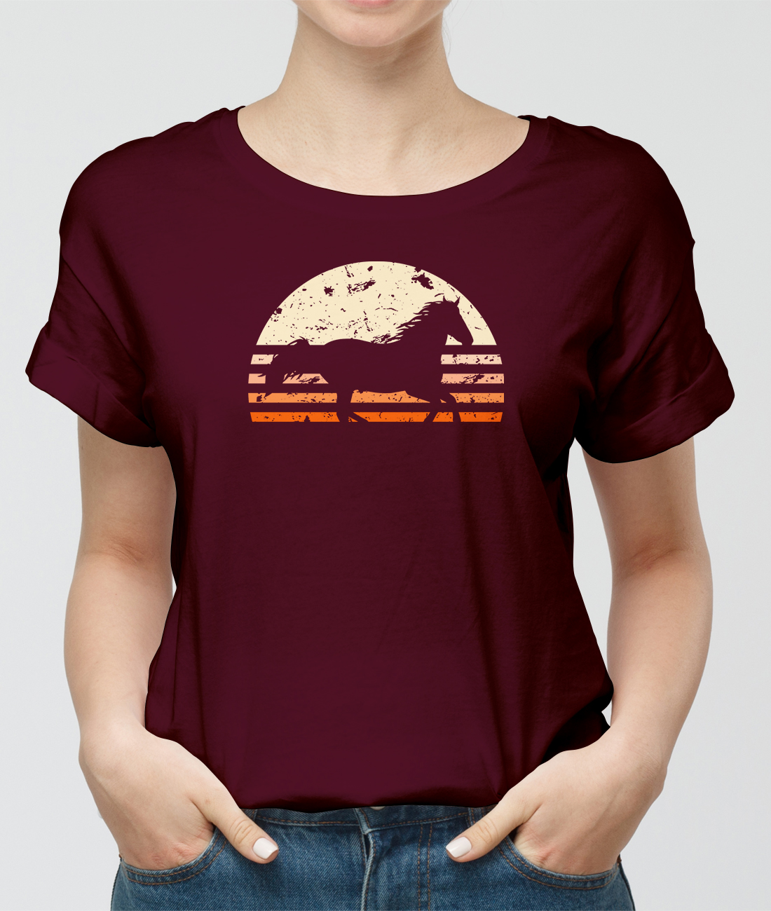 Krásný motiv trička s koněm. Kůň je domestikováno zvíře, které je používáno ve sportu nebo při svážení dřeva. Samice koně se jmenuje klisna, samec hřebec a mládě hříbě.