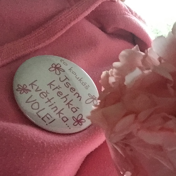 Button with a safety pin. Full-colour printing (logo, text, abstraction), the front page is covered with a shiny translucent protective foil. The price is set for one piece. There is a wide range of use, for example as a music band or company merch, for A-levels, or as a summer camp merch.