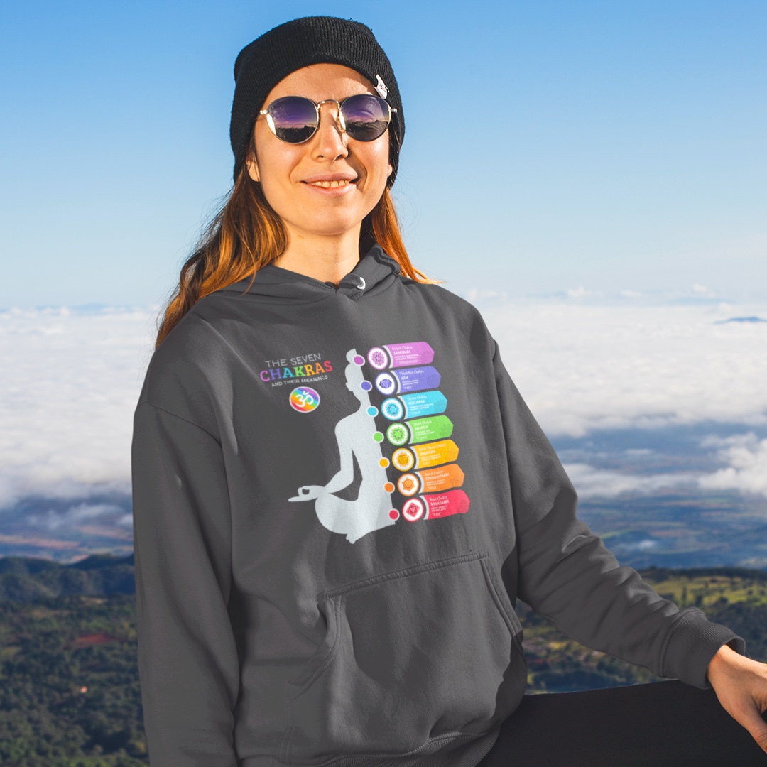 Dámska mikina s kapucňou s potlačou 7 čaker + popis