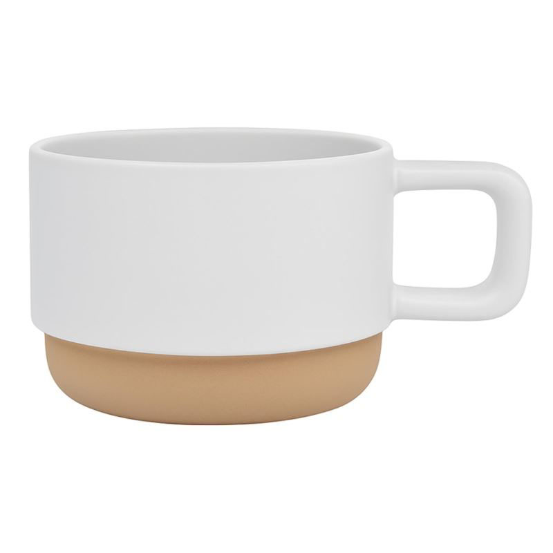 Matný keramický hrnček s hranatým uškom. Jemný vzhľad, zaoblené béžové dno presne zapadá do hornej časti druhého hrnčeka (stohovateľný dizajn). Odolný povrch vhodný do umývačky riadu. Rozmery: Výška 65 mm, priemer 90 mm (300 ml: 77mm výška). Objem: 200 ml/300 ml.