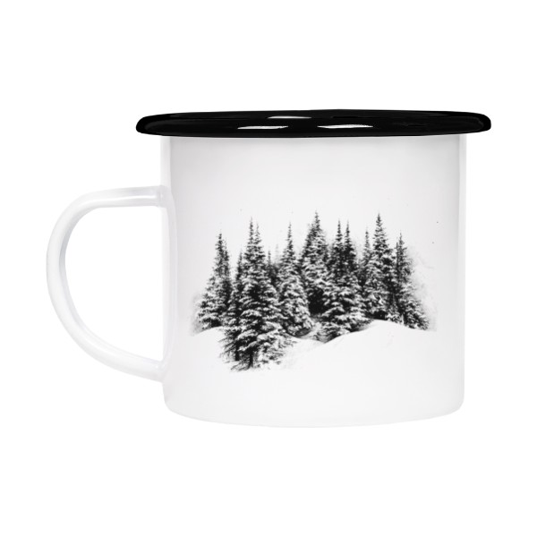 Smaltovaný plechový hrnček s čiernym alebo modrým ručne maľovaným lemom, priemerom 80 mm a objemom 300 ml poteší každého dobrodruha.