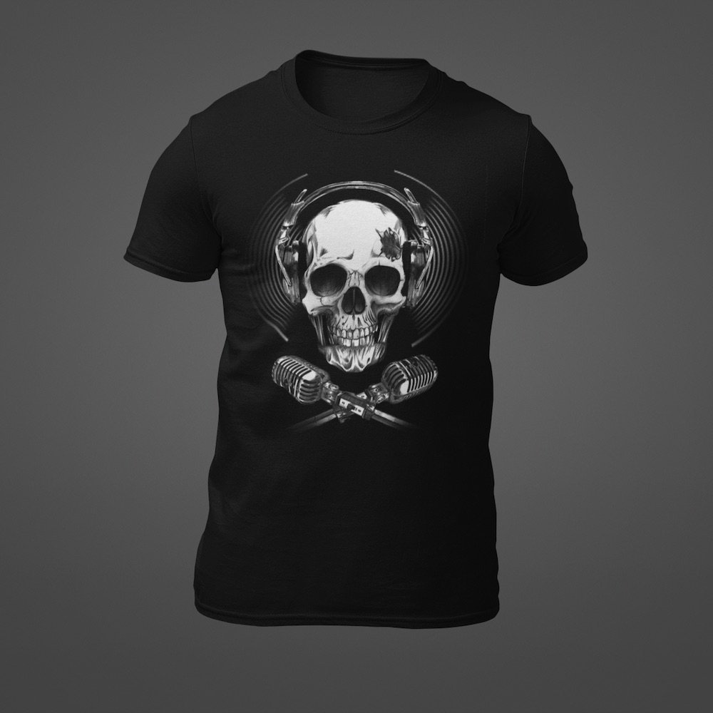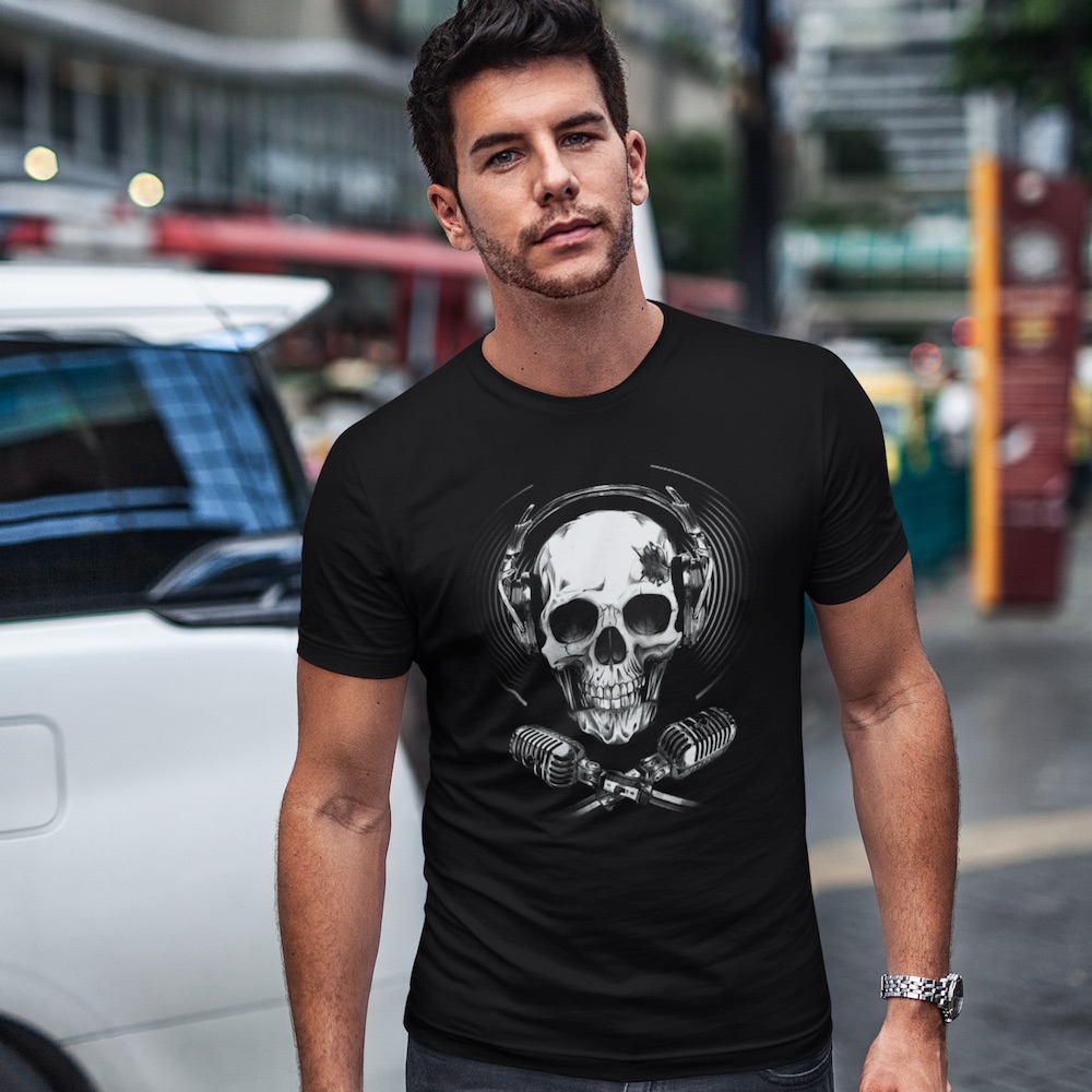Tričko s potlačou Lebka Mikrofony a sluchátka