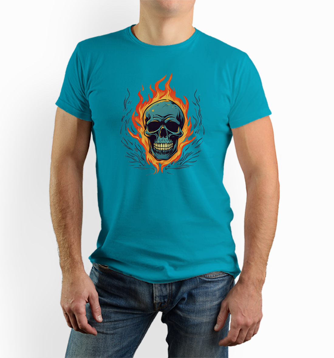 Originálne tričko s ohnivou lebkou