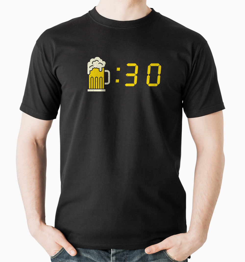 Vtipné tričko, ktoré zobrazuje čas na pivo.